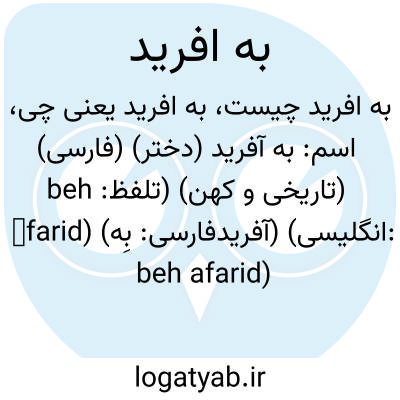 اسم: به آفرید (دختر) (فارسی) (تاریخی و کهن) (تلفظ: beh āfarid) (فارسی: بِه‌آفريد) (انگلیسی: beh afarid)