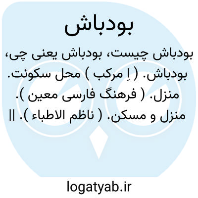 بودباش. ( اِ مرکب ) محل سکونت. منزل. ( فرهنگ فارسی معین ). منزل و مسکن. ( ناظم الاطباء ). || سکونت. ( آنندراج ). || خدمت. || خوراک. ( فرهنگ فارسی معین ) ( ناظم الاطباء ).