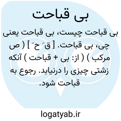 بی قباحت. [ ق َ ح َ ] ( ص مرکب ) ( از: بی + قباحت ) آنکه زشتی چیزی را درنیابد. رجوع به قباحت شود.