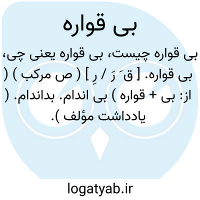 بی قواره. [ ق َ رَ / رِ ] ( ص مرکب ) ( از: بی + قواره ) بی اندام. بداندام. ( یادداشت مؤلف ). || ناقواره. پارچه و قماش که از قدر حاجت بیشتر یا کمتر است. پارچه که یا ناقص و یا زائد از جامه مقصود باشد. ( یادداشت مؤلف ).
