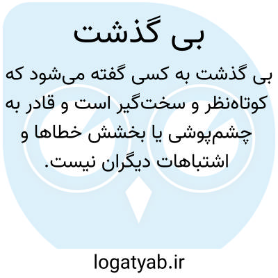 بی‌ گذشت به کسی گفته می‌شود که کوتاه‌نظر و سخت‌گیر است و قادر به چشم‌پوشی یا بخشش خطاها و اشتباهات دیگران نیست. این واژه در واقع به افرادی اطلاق می‌شود که کینه‌توزی یا لجاجت دارند و نمی‌توانند از خطاهای دیگران بگذرند، حتی اگر شرایط یا دلایل موجه باشد. این حالت معمولاً یک صفت منفی در توصیف رفتار و اخلاق فرد به حساب می‌آید.