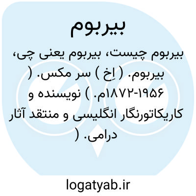 بیربوم. ( اِخ ) سر مکس. ( 1872-1956م. ) نویسنده و کاریکاتورنگار انگلیسی و منتقد آثار درامی. ( دایرة المعارف فارسی ).