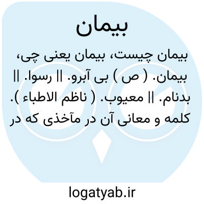 بیمان. ( ص ) بی آبرو. || رسوا. || بدنام. || معیوب. ( ناظم الاطباء ). کلمه و معانی آن در مآخذی که در دسترس بود دیده نشده.