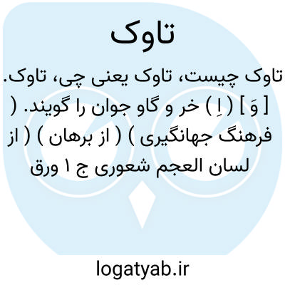 تاوک. [ وَ ] ( اِ ) خر و گاو جوان را گویند. ( فرهنگ جهانگیری ) ( از برهان ) ( از لسان العجم شعوری ج 1 ورق 281 )( از شرفنامه منیری ). تاول. ( فرهنگ جهانگیری ) ( شرفنامه منیری ). کره خر و گوساله. ( ناظم الاطباء ) ( لسان العجم شعوری ج 1 ورق 284 ب ). در برهان بمعنی خر و گاو جوانه نوشته و همانا لام را کاف دانسته زیرا که در فرهنگ رشیدی تاول خر و گاو جوان را گفته است مستند بشعرفخری... ( آنندراج ) ( انجمن آرا ). تاوک بمعنی گاو جوانه یعنی تاوَل و تاوک غلط و تصحیف خوانیست چنانکه فرهنگ اسدی و شمس فخری که هر دو رعایت آخر کلمات را کرده اند، تاول با لام ضبط کرده اند نه با کاف. رجوع به تاول در همین لغت نامه شود.