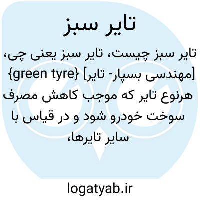 {green tyre} [مهندسی بسپار- تایر] هرنوع تایر که موجب کاهش مصرف سوخت خودرو شود و در قیاس با سایر تایرها، مقاومت غلتشی کمتری داشته باشد