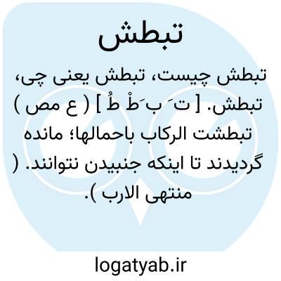 تبطش. [ ت َ ب َطْ طُ ] ( ع مص ) تبطشت الرکاب باحمالها؛ مانده گردیدند تا اینکه جنبیدن نتوانند. ( منتهی الارب ). مانده گردیدند شترسواران تا اینکه جنبیدن نتوانستند. ( ناظم الاطباء ).