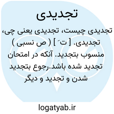 تجدیدی. [ ت َ ] ( ص نسبی ) منسوب بتجدید. آنکه در امتحان تجدید شده باشد.رجوع بتجدید شدن و تجدید و دیگر ترکیب های آن شود.