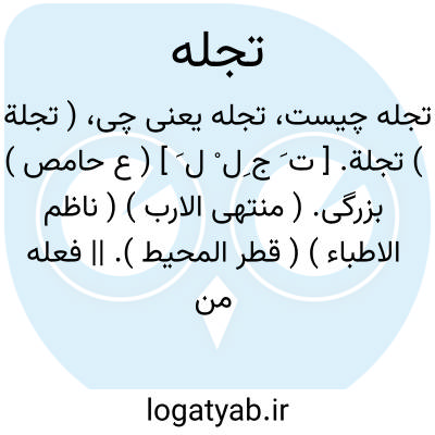 ( تجلة ) تجلة. [ ت َ ج ِل ْ ل َ ] ( ع حامص ) بزرگی. ( منتهی الارب ) ( ناظم الاطباء ) ( قطر المحیط ). || فعله من تجلتک؛ کرد آن را از بهر تو. ( منتهی الارب ) ( ناظم الاطباء ) ( از اقرب الموارد ) ( از قطر المحیط ).