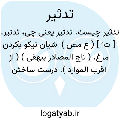 تدثیر. [ ت َ ] ( ع مص ) آشیان نیکو بکردن مرغ. ( تاج المصادر بیهقی ) ( از اقرب الموارد ). درست ساختن مرغ آشیانه خود را. ( منتهی الارب ) ( آنندراج ) ( ناظم الاطباء ). || برهم نهاده شدن سنگها بر قتیل. ( منتهی الارب ). سنگ نهادن بر روی کشته.( ناظم الاطباء ). || پوشانیدن به دثار. ( المنجد ). پوشانیدن خفته به روی پوش. ( اقرب الموارد ). جامه در کسی پوشاندن. ( دهار ). || کشتن کسی را. ( المنجد ). کشتن قوم یکدیگر را. ( اقرب الموارد ).