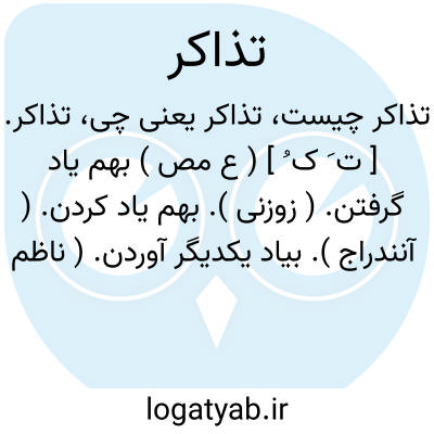 تذاکر. [ ت َ ک ُ ] ( ع مص ) بهم یاد گرفتن. ( زوزنی ). بهم یاد کردن. ( آنندراج ). بیاد یکدیگر آوردن. ( ناظم الاطباء ). یاد آوردن چیزی. ( المنجد ). || تفاوض در امری. ( المنجد ) ( اقرب الموارد ).