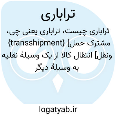 {transshipment} [مشترک حمل ونقل] انتقال کالا از یک وسیلۀ نقلیه به وسیلۀ دیگر