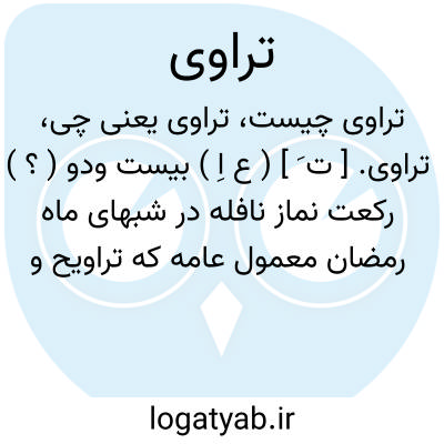 تراوی. [ ت َ ] ( ع اِ ) بیست ودو ( ؟ ) رکعت نماز نافله در شبهای ماه رمضان معمول عامه که تراویح و ترویحة نیز گویند. ( ناظم الاطباء ).