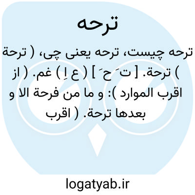 ( ترحة ) ترحة. [ ت َ ح َ ] ( ع اِ ) غم. ( از اقرب الموارد ): و ما من فرحة الا و بعدها ترحة. ( اقرب الموارد ): ابداً یولد ترحة من فرحة و یصب غماً منتهاه سرور. ( سندبادنامه ص 32 ). رجوع به تَرَح شود.