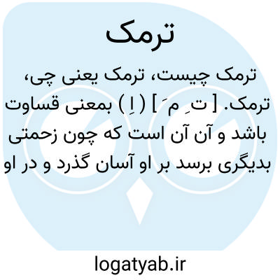 ترمک. [ ت ِ م َ ] ( اِ ) بمعنی قساوت باشد و آن آن است که چون زحمتی بدیگری برسد بر او آسان گذرد و در او رحم و شفقت نباشد. ( برهان ). قساوت و سخت دلی و عدم رحم و شفقت. ( ناظم الاطباء ).
