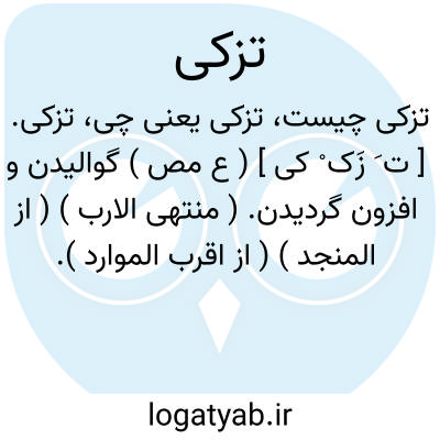 تزکی. [ ت َ زَک ْ کی ] ( ع مص ) گوالیدن و افزون گردیدن. ( منتهی الارب ) ( از المنجد ) ( از اقرب الموارد ). گوالیدن. ( آنندراج ). || پاکی کردن. ( تاج المصادر بیهقی ) ( زوزنی ). پاک شدن. ( ترجمان جرجانی ترتیب عادل بن علی ). زکی شدن. ( از اقرب الموارد ) ( از المنجد ). || زکوة بدادن. ( زوزنی ) ( آنندراج ). || صدقه دادن. ( تاج المصادر بیهقی ) ( آنندراج ). صدقه کردن. ( منتهی الارب ) ( ناظم الاطباء ) ( از اقرب الموارد ) ( از المنجد ).