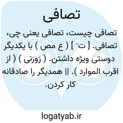تصافی. [ ت َ ] ( ع مص ) با یکدیگر دوستی ویژه داشتن. ( زوزنی ) ( از اقرب الموارد ). || همدیگر را صادقانه کار کردن. ( ناظم الاطباء ) ( از اقرب الموارد ).