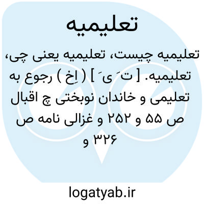 تعلیمیه. [ ت َ ی َ ] ( اِخ ) رجوع به تعلیمی و خاندان نوبختی چ اقبال ص 55 و 252 و غزالی نامه ص 326 و اسماعیلیه و باطنیه و ملاحده و سبعیه و هفت امامیان شود.