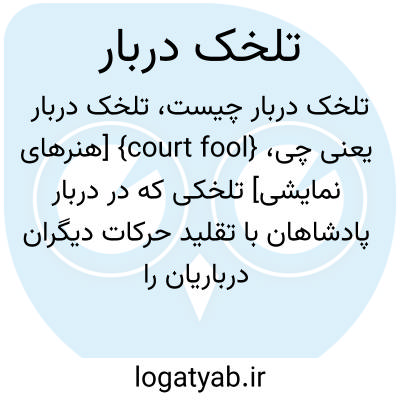 {court fool} [هنرهای نمایشی] تلخک‍ی که در دربار پادشاهان با تقلید حرکات دیگران درباریان را سرگرم می کرد