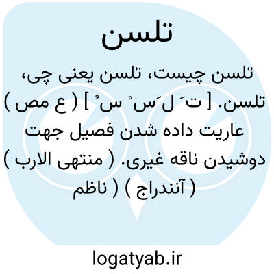 تلسن. [ ت َ ل َس ْ س ُ ] ( ع مص ) عاریت داده شدن فصیل جهت دوشیدن ناقه غیری. ( منتهی الارب ) ( آنندراج ) ( ناظم الاطباء ) ( از اقرب الموارد ). || شعله زدن آتش و مشتعل گردیدن. ( منتهی الارب ) ( آنندراج ) ( ناظم الاطباء ). || دروغ گفتن. ( از اقرب الموارد ).