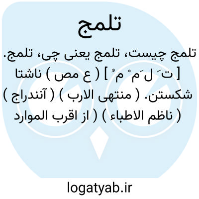 تلمج. [ ت َ ل َم ْ م ُ ] ( ع مص ) ناشتا شکستن. ( منتهی الارب ) ( آنندراج ) ( ناظم الاطباء ) ( از اقرب الموارد ). || تلمظ. ( تاج المصادر بیهقی ). لب لیسیدن. ( منتهی الارب ) ( آنندراج ) ( ناظم الاطباء ). رجوع به تلمظ شود.