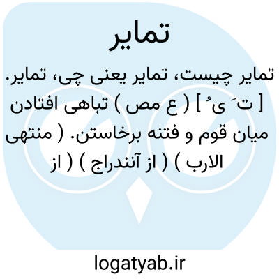 تمایر. [ ت َ ی ُ ] ( ع مص ) تباهی افتادن میان قوم و فتنه برخاستن. ( منتهی الارب ) ( از آنندراج ) ( از ناظم الاطباء ) ( از اقرب الموارد ).