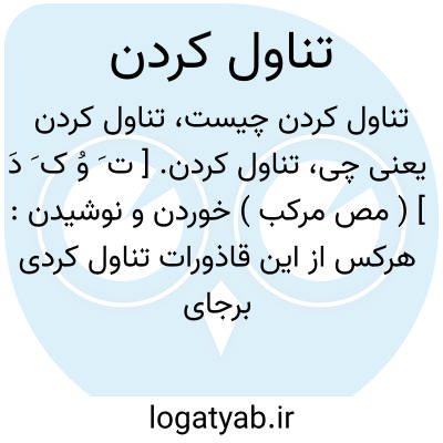 تناول کردن. [ ت َ وُ ک َ دَ ] ( مص مرکب ) خوردن و نوشیدن: هرکس از این قاذورات تناول کردی برجای بیفتادی و جان بدادی. ( ترجمه تاریخ یمینی چ 1 تهران ص 326 ). جوانمرد را آتش معده بالا گرفته بود و عنان طاقت از دست رفته،لقمه ای چند از سر اشتها تناول کرد. ( گلستان ). چون بمقام خویش آمد سفره خواست تا تناول کند. ( گلستان ).