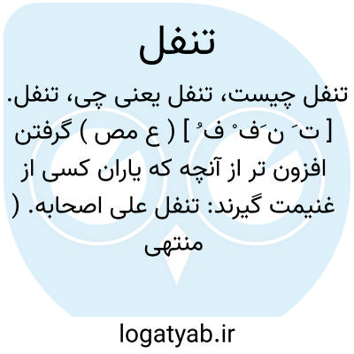 لغت نامه دهخدا تنفل. [ ت َ ن َف ْ ف ُ ] ( ع مص ) گرفتن افزون تر از آنچه که یاران کسی از غنیمت گیرند: تنفل علی اصحابه. ( منتهی الارب ) ( ناظم الاطباء ) ( از اقرب الموارد ). || نفل گزاردن. ( از منتهی الارب ). نافله گزاردن. ( ناظم الاطباء ) ( از اقرب الموارد ).