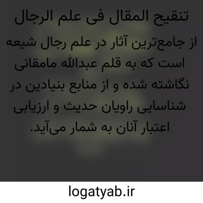 [ویکی شیعه] تنقیح المقال فی علم الرجال (کتاب). تَنْقیحُ المَقال فی اَحوالِ الرّجال یا تنقیح المقال فی علم الرجال کتابی مفصل در علم رجال به زبان عربی، که به تنقیح المقال مشهور است. کتاب تألیف شیخ عبداللّه مامقانی،(م ۱۳۱۱ش) عالم و فقیه امامی قرن چهاردهم است. نویسنده در این کتاب درباره بیش از ۱۶۰۰۰ راوی بحث کرده است. آقا بزرگ تهرانی آن را مفصّل ترین اثر در علم رجال دانسته است. محسن امین و شوشتری انتقاداتی به این کتاب دارند. فرزند مامقانی چند جلد از کتاب را با توضیح و تعلیقات منتشر کرده و بنا دارد بقیه جلدها را نیز منتشر کند.