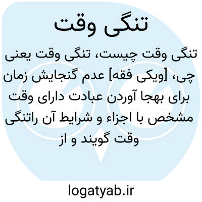 [ویکی فقه] عدم گنجایش زمان برای بهجا آوردن عبادت دارای وقت مشخص با اجزاء و شرایط آن راتنگی وقت گویند و از آن در بابهایی نظیر طهارت، صلات و حج سخن رفته است.