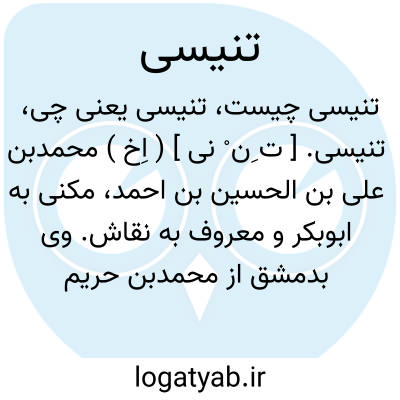 تنیسی. [ ت ِن ْ نی ] ( اِخ ) محمدبن علی بن الحسین بن احمد، مکنی به ابوبکر و معروف به نقاش. وی بدمشق از محمدبن حریم ومحمدبن عتاب زفتی و گروهی دیگر حدیث شنید و دارقطنی و جز او از وی روایت کنند. در رمضان 272 هَ. ق. متولد شد و در شعبان 369 درگذشت. ( از معجم البلدان ).
