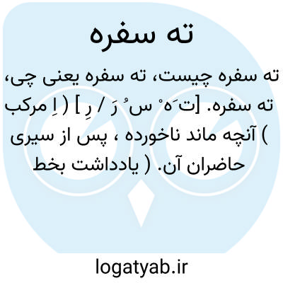 ته سفره. [ت َه ْ س ُ رَ / رِ ] ( اِ مرکب ) آنچه ماند ناخورده، پس از سیری حاضران آن. ( یادداشت بخط مرحوم دهخدا ). باقیمانده غذا. آنچه پس از خوردن در سفره باقی ماند.
