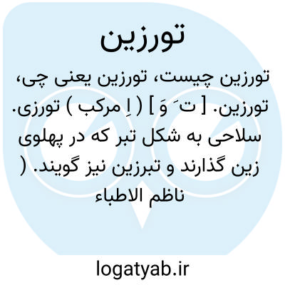 تورزین. [ ت َ وَ ] ( اِ مرکب ) تورزی. سلاحی به شکل تبر که در پهلوی زین گذارند و تبرزین نیز گویند. ( ناظم الاطباء ). رجوع به تبرزین شود.