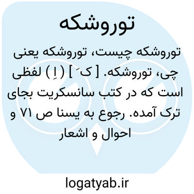 توروشکه. [ ک َ ] ( اِ ) لفظی است که در کتب سانسکریت بجای ترک آمده. رجوع به یسنا ص 71 و احوال و اشعار رودکی ج 1 ص 155 شود.