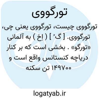 تورگووی. [ گ ُ ] ( اِخ ) به آلمانی «تورگو». بخشی است که بر کنار دریاچه کنستانس واقع است و 149700 تن سکنه دارد و مرکز آن فرن فلد است. ( از لاروس ). رجوع به قاموس الاعلام ترکی ذیل کلمه تورغوویا شود.