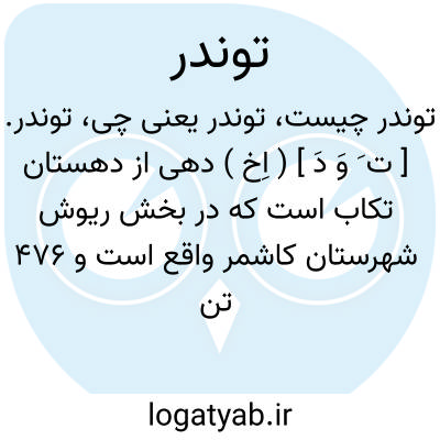 توندر. [ ت َ وَ دَ ] ( اِخ ) دهی از دهستان تکاب است که در بخش ریوش شهرستان کاشمر واقع است و 476 تن سکنه دارد. ( از فرهنگ جغرافیایی ایران ج 9 ).