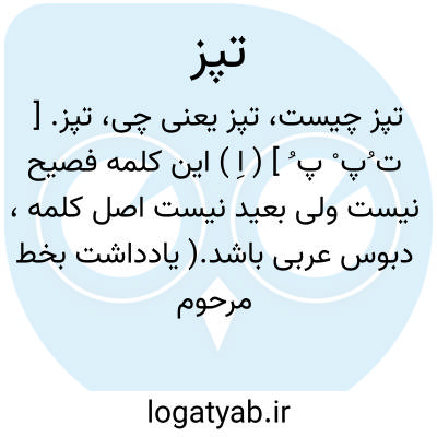 تپز. [ ت ُپ ْ پ ُ ] ( اِ ) این کلمه فصیح نیست ولی بعید نیست اصل کلمه، دبوس عربی باشد.( یادداشت بخط مرحوم دهخدا ). مؤلف فرهنگ نظام این کلمه را بفتح پ آورده و بدینسان معنی کرده: گرز که سلاحی است از چوب یا آهن. لفظ مذکور را در تکلم بیشتر با ضم پ خوانند که غلط مشهور است چه در ترکی نیز با ضم پ بمعنی گوی چوگان و تپانچه است نه گرز. -انتهی.