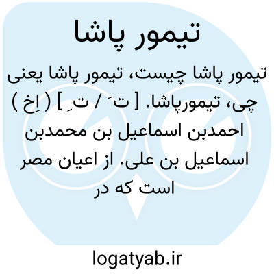 تیمورپاشا. [ ت َ / ت ِ ] ( اِخ ) احمدبن اسماعیل بن محمدبن اسماعیل بن علی. از اعیان مصر است که در سال 1288 هَ. ق. در قاهره متولد شد. وی در مدرسه کبیر به تحصیل علوم پرداخت و در علم لغت از شنقیطی و شیخ حسن طویل و مخلاتی بهره مند گشت. وی صاحب خزانه تیموریه است... وی تعصب عظیمی در ترویج علوم و اعتلای زبان عرب داشت. اوراست: تصحیح لسان العرب. فهرست کتاب الکواکب السیارة فی ترتیب الزیارة. رسالات و مقالات عدیده در تاریخ وادب از آن جمله رساله ای از محاورات رشیدالدین وطواطو امام زمخشری... ( از معجم المطبوعات ج 1 ص 652 ).