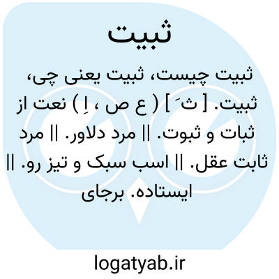 ثبیت. [ ث َ ] ( ع ص، اِ ) نعت از ثبات و ثبوت. || مرد دلاور. || مرد ثابت عقل. || اسب سبک و تیز رو. || ایستاده. برجای مانده. قرارگیرنده.