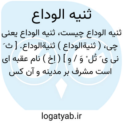 ( ثنیةالوداع ) ثنیةالوداع. [ ث َ نی ی َ تُل ْ وَ / وِ ] ( اِخ ) نام عقبه ای است مشرف بر مدینه و آن کس که به طرف مکه بیاید از آنجا گذرد. ( مراصد الاطلاع ).