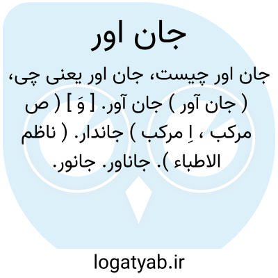 جان آور. [ وَ ] ( اِخ ) شمال سیاه کوه افغانستان.، جاناور. [ وَ ] ( ص مرکب، اِ مرکب ) جانور. ( ناظم الاطباء ). حیوان.زنده. پرندگان حی. جاندار. هرچه جان دارد از آدمی وغیر آن. ( شرفنامه منیری ). مطلق حیوان: