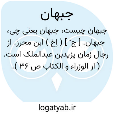 جبهان. [ ج َ ] ( اِخ ) ابن محرز. از رجال زمان یزیدبن عبدالملک است. ( از الوزراء و الکتاب ص 36 ).