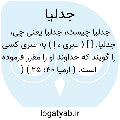 جدلیا. [ ] ( عبری، اِ ) به عبری کسی را گویند که خداوند او را مقرر فرموده است. ( ارمیا 40: 25 ) ( از قاموس کتاب مقدس ).