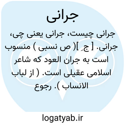 جرانی. [ ج ِ ]( ص نسبی ) منسوب است به جران العود که شاعر اسلامی عقیلی است. ( از لباب الانساب ). رجوع به جران العود شود.