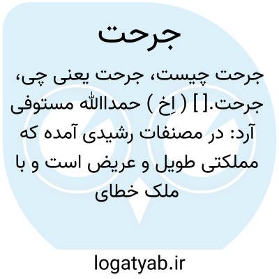 جرحة. [ ج َ ح َ ] ( ع اِ ) راه. ( مهذب الاسماء خطی ) در فرهنگهای دیگر کلمه مذکور به این معنی نیامده است. در نسخه دیگر مهذب الاسماء بجیم ثالث به این معنی ضبط شده و بظاهر یکی مصحف دیگری است. و بنظر میرسد که ضبط اخیر صحیح است.
