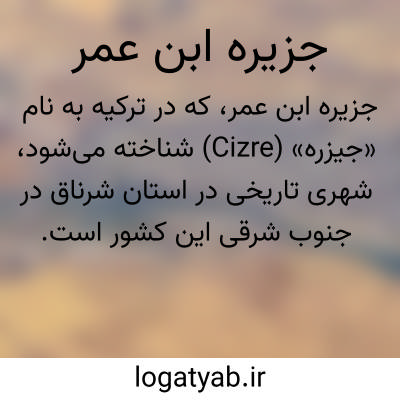 جزیره ابن عمر، که در ترکیه به نام «جیزره» (Cizre) شناخته میشود، شهری تاریخی در استان شرناق در جنوب شرقی این کشور است. این شهر در نزدیکی مرزهای ترکیه، سوریه و عراق واقع شده و رود دجله از سه طرف آن را احاطه کرده است. به همین دلیل، نام «جزیره» به آن اطلاق شده است. در زبان کردی کرمانجی، این شهر «جزیرا بوتان» نامیده میشود.