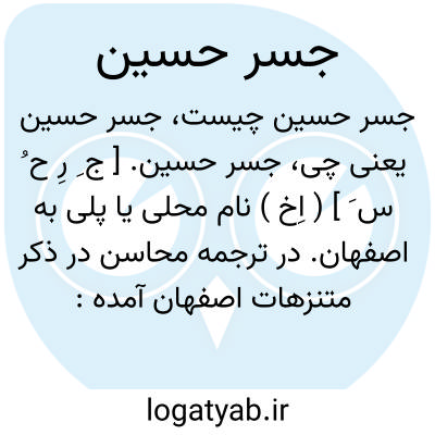 جسر حسین. [ ج ِ رِ ح ُ س َ ] ( اِخ ) نام محلی یا پلی به اصفهان. در ترجمه محاسن در ذکر متنزهات اصفهان آمده: قصر خصیب موضوع بر طرف جسر حسین،... سایر ابنیه علیه و اماکن سنیه که وصف کمال آن در شرح نمی آید. و ابوسعید رستمی در وصف اصفهان گوید:
