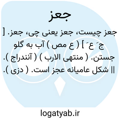 لغت نامه دهخدا جعز. [ ج َ ع َ ] ( ع مص ) آب به گلو جستن. ( منتهی الارب ) ( آنندراج ). || شکل عامیانه عجز است. ( دزی ).