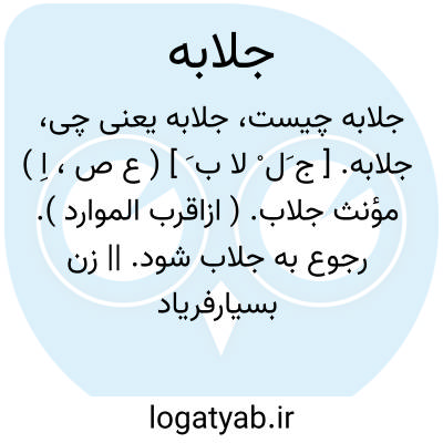 جلابه. [ ج َل ْ لا ب َ ] ( ع ص، اِ ) مؤنث جلاب. ( ازاقرب الموارد ). رجوع به جلاب شود. || زن بسیارفریاد بیهده گوی بدخوی. ( منتهی الارب ). رجوع به جلبانه شود.