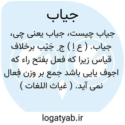 جیاب. ( ع اِ ) ج ِ جَیْب برخلاف قیاس زیرا که فعل بفتح راء که اجوف یایی باشد جمع بر وزن فِعال نمی آید. ( غیاث اللغات ) ( آنندراج ).