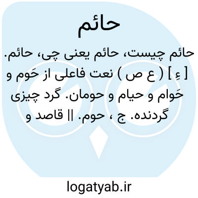 حائم. [ ءِ ] ( ع ص ) نعت فاعلی از حَوم و حَوام و حیام و حومان. گرد چیزی گردنده. ج، حوم. || قاصد و عازم و آهنگ کننده کاری. ج، حُوّم. || تشنه. ظمآن. عطشان. ج، حوائم، حُوّم.